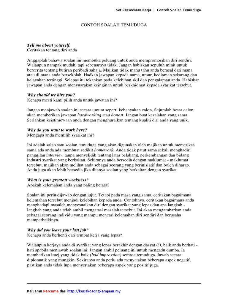 Contoh Soalan Temuduga Spa Dan Temuduga Kerja Kerajaan Pdf